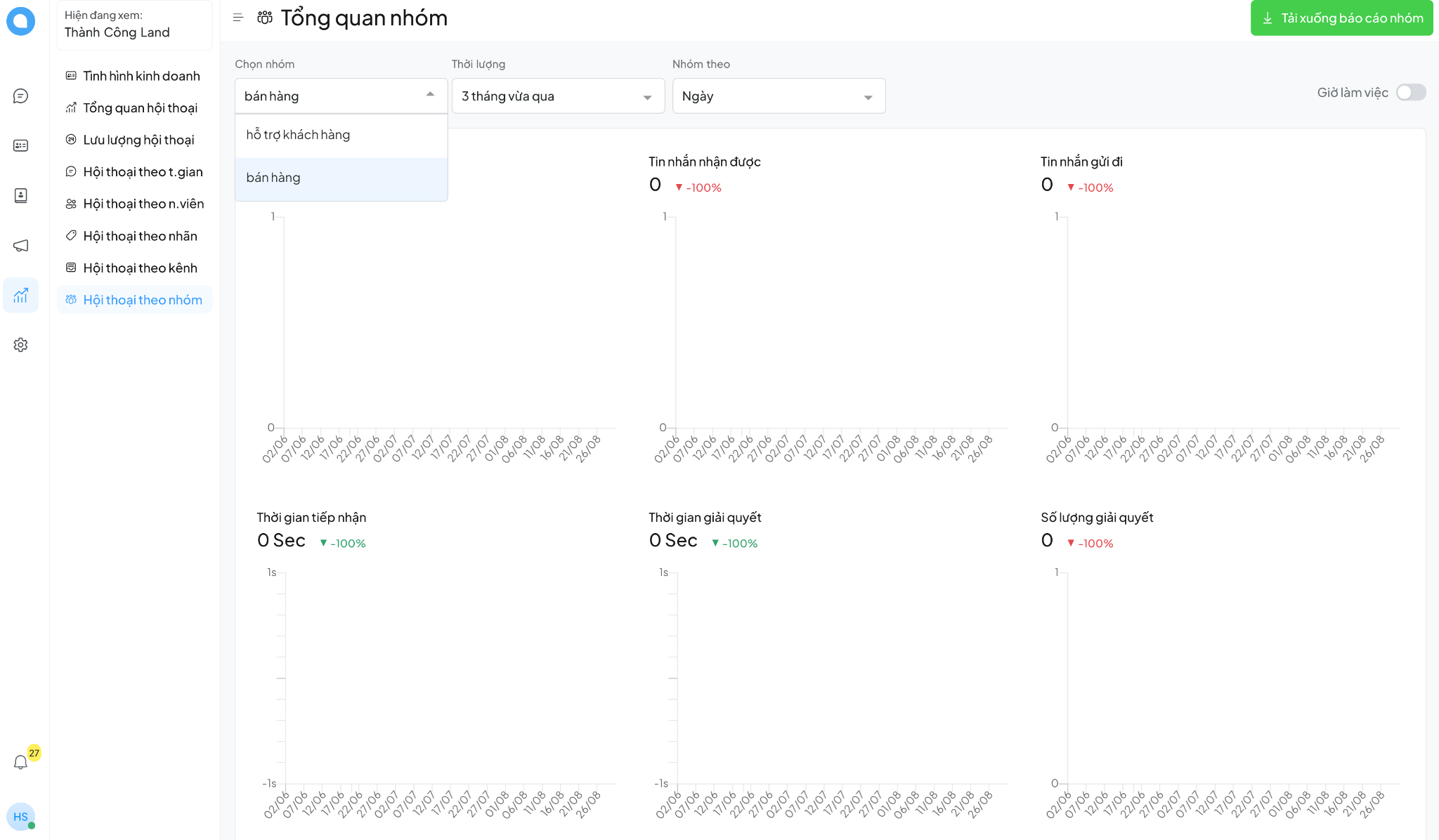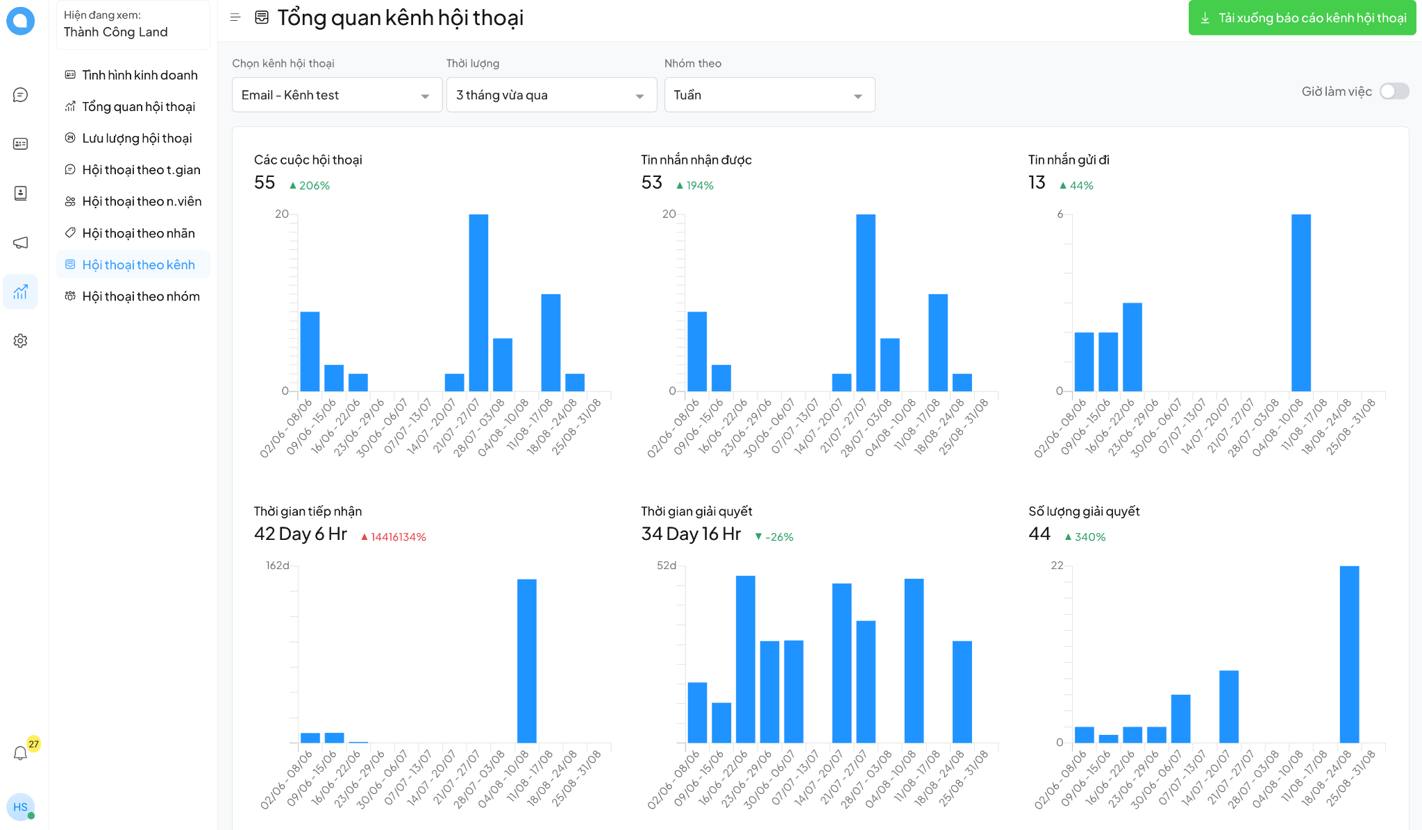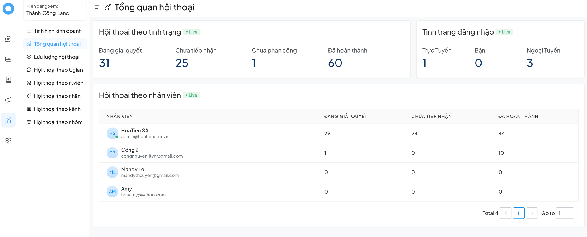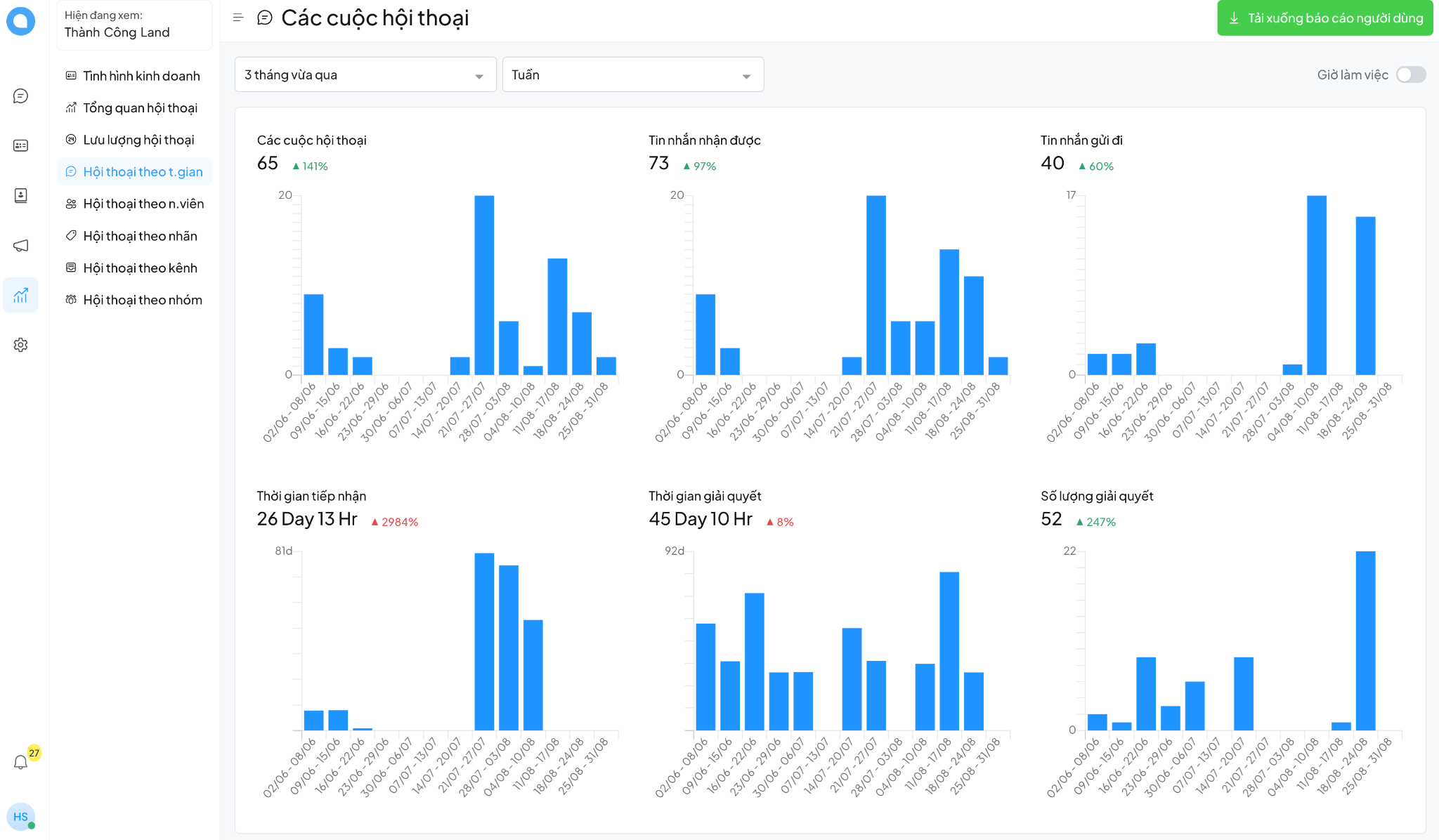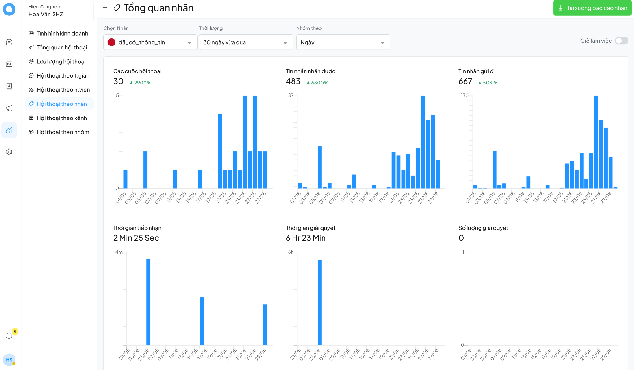 - Các cuộc hội thoại: thống kê số lượng hội thoại