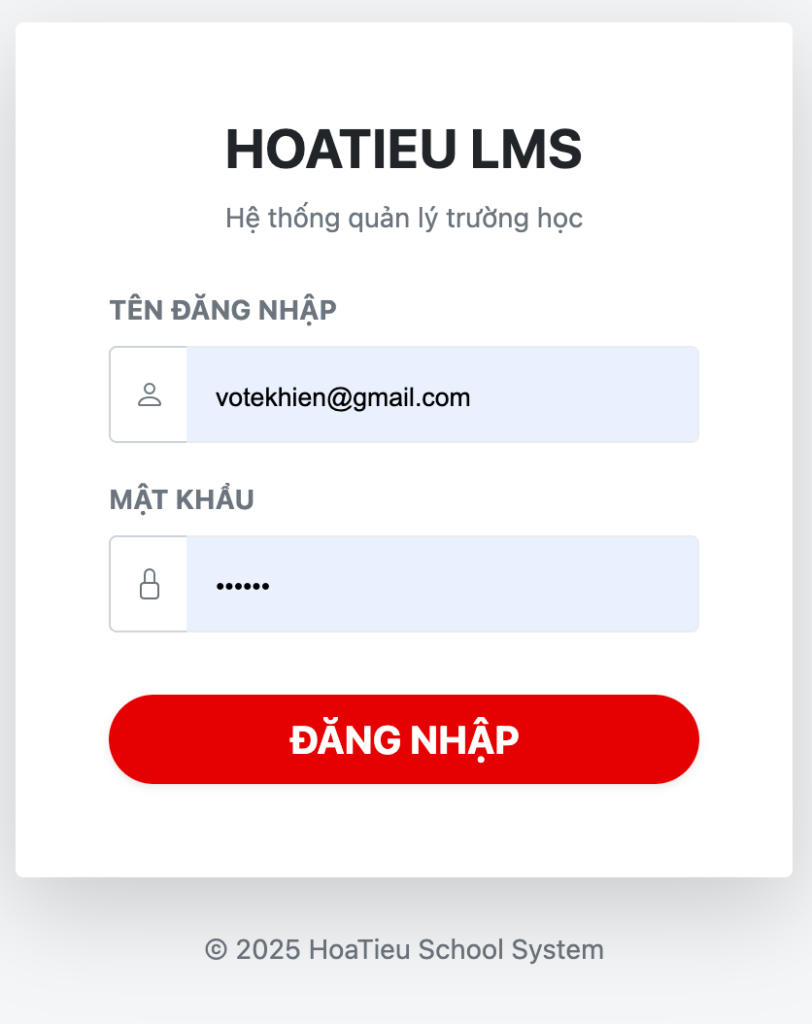- Hành động: Nhấn nút màu đỏ “ĐĂNG NHẬP” để truy cập.