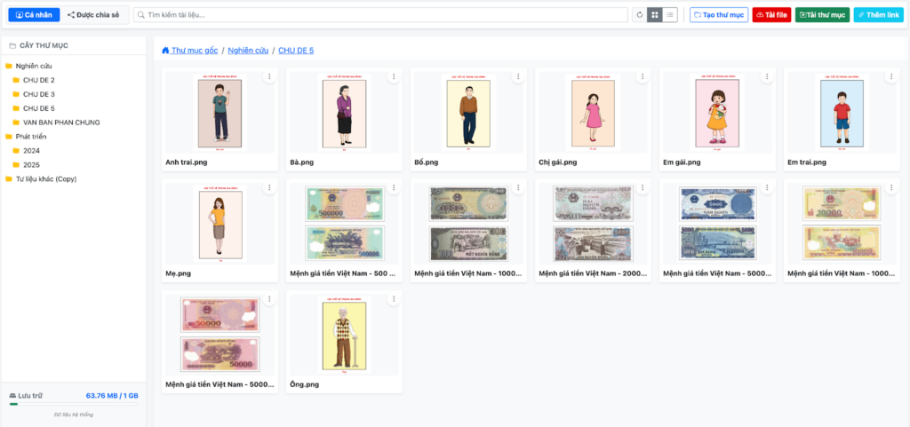 - Cá nhân: Nơi chứa tài liệu riêng của bạn (Bạn có toàn quyền sửa/xóa).