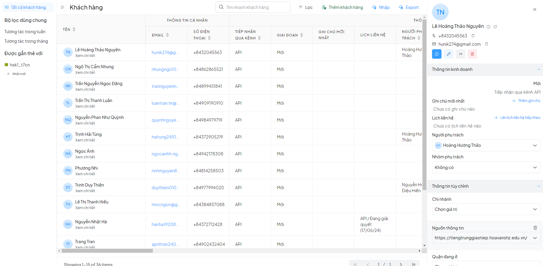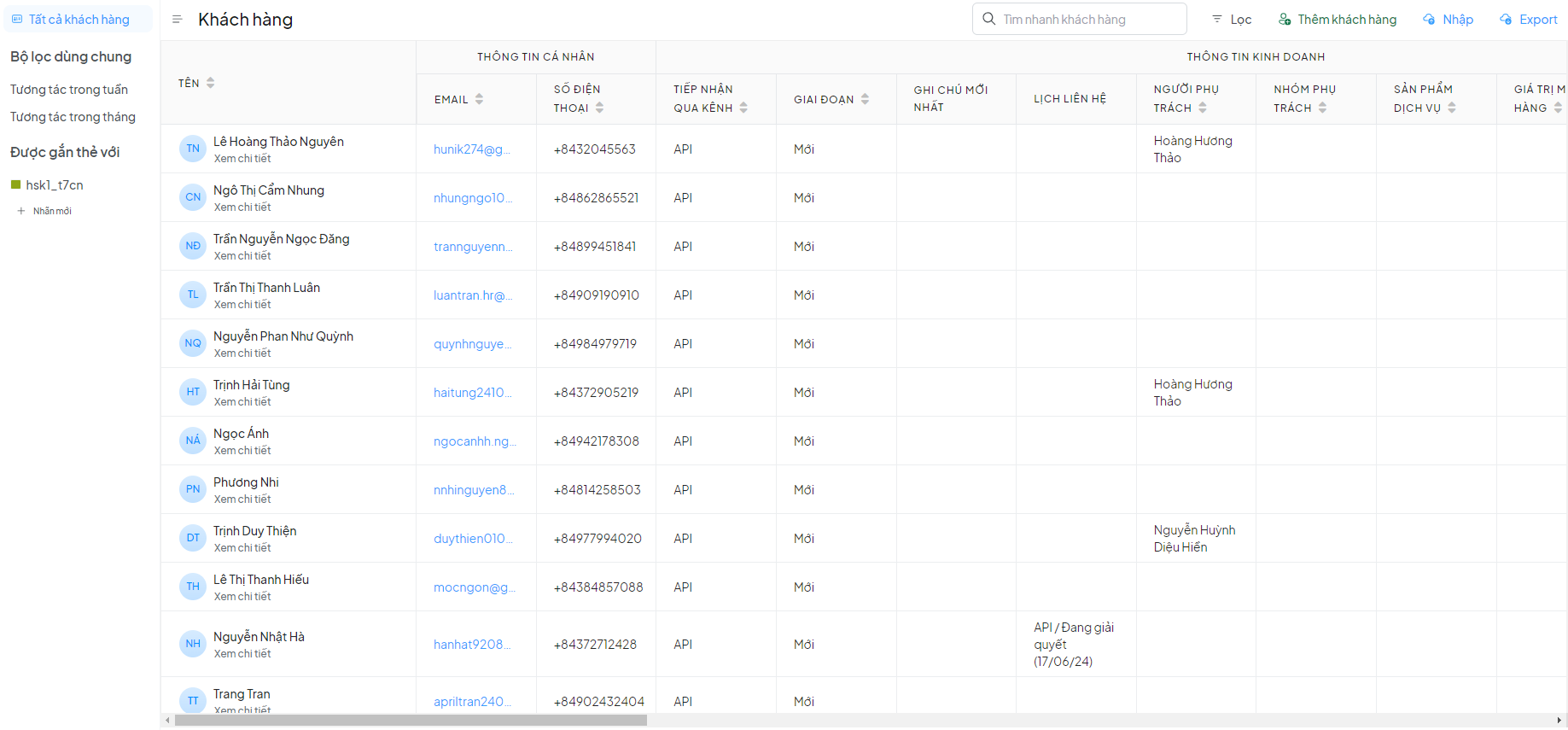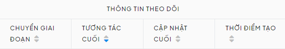 - Thông tin theo dõi: chuyển giai đoạn, tương tác cuối,…