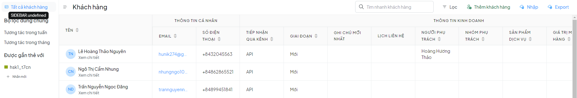 Phần 2: Bộ công cụ lọc tìm kiếm nhanh, lọc khách hàng theo điều kiện, thêm mới khách hàng, import, export danh sách từ file mẫu.