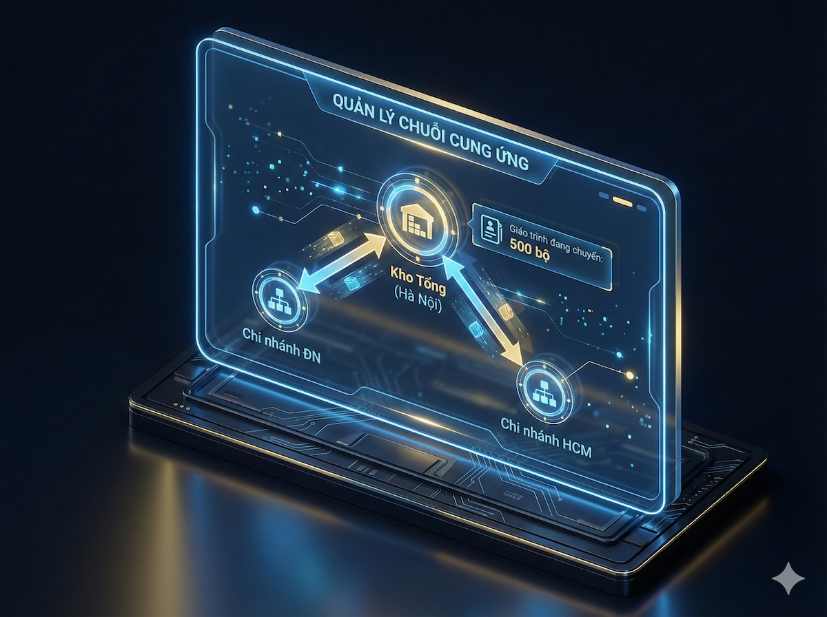 Quản lý xuất/nhập/tồn giáo trình, đồng phục, quà tặng tại kho tổng và từng chi nhánh. Cảnh báo tồn kho thấp để bổ sung kịp thời.