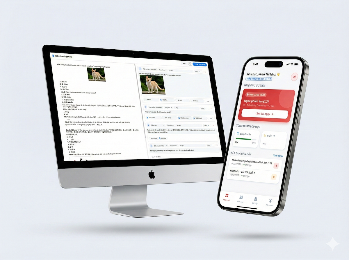 - Hybrid Grading: AI chấm trắc nghiệm tức thì + Giáo viên chấm bài Nói/Viết (kèm Feedback âm thanh).